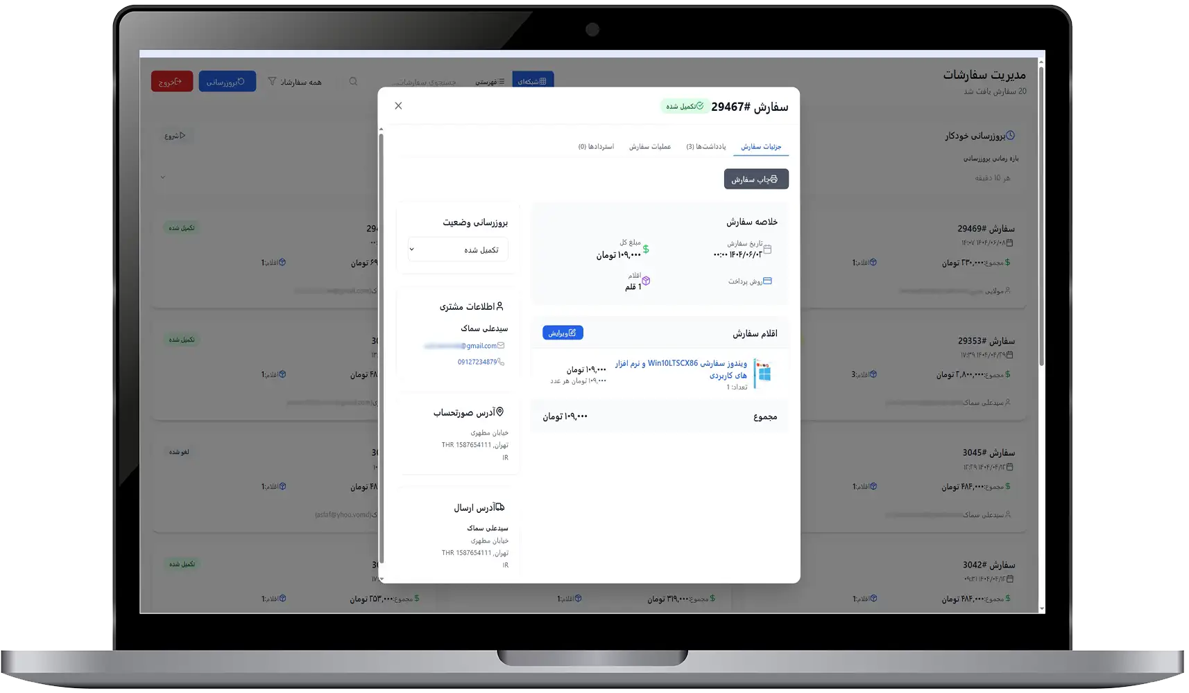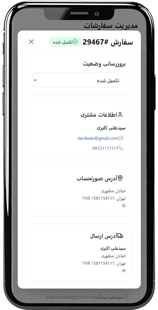- مشاهده جزئیات کامل سفارش