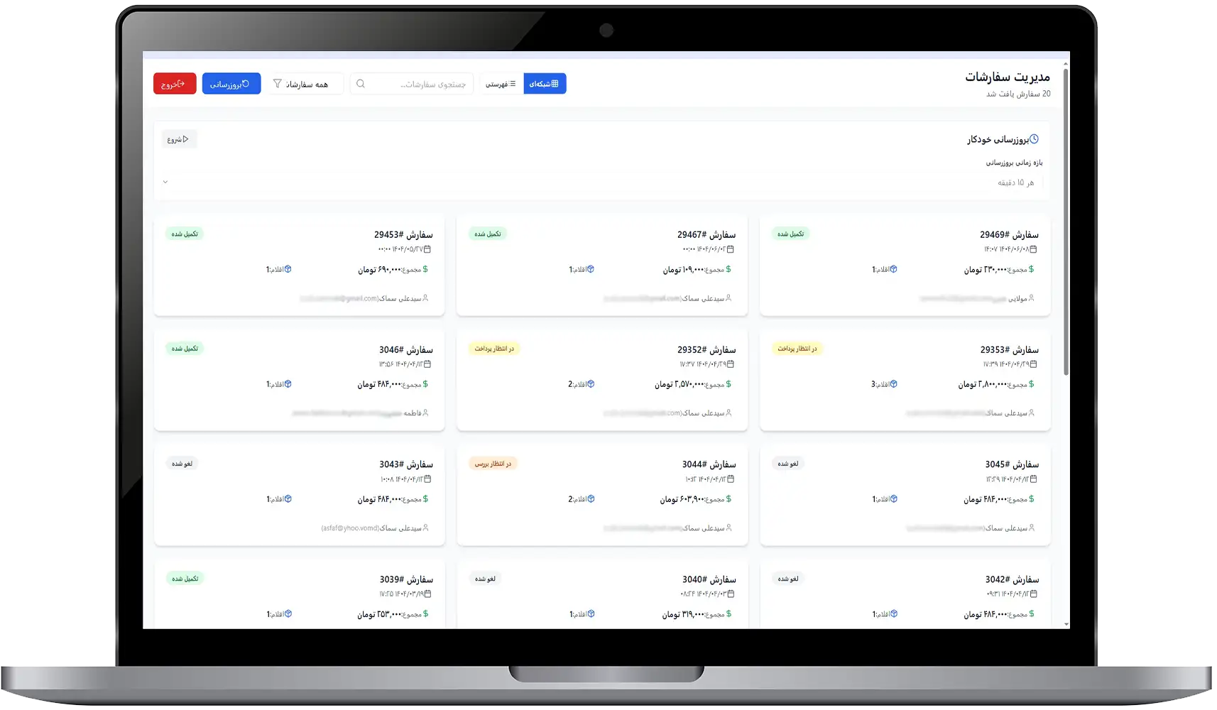 وب اپلیکیشن مدیریت سفارشات ووکامرس